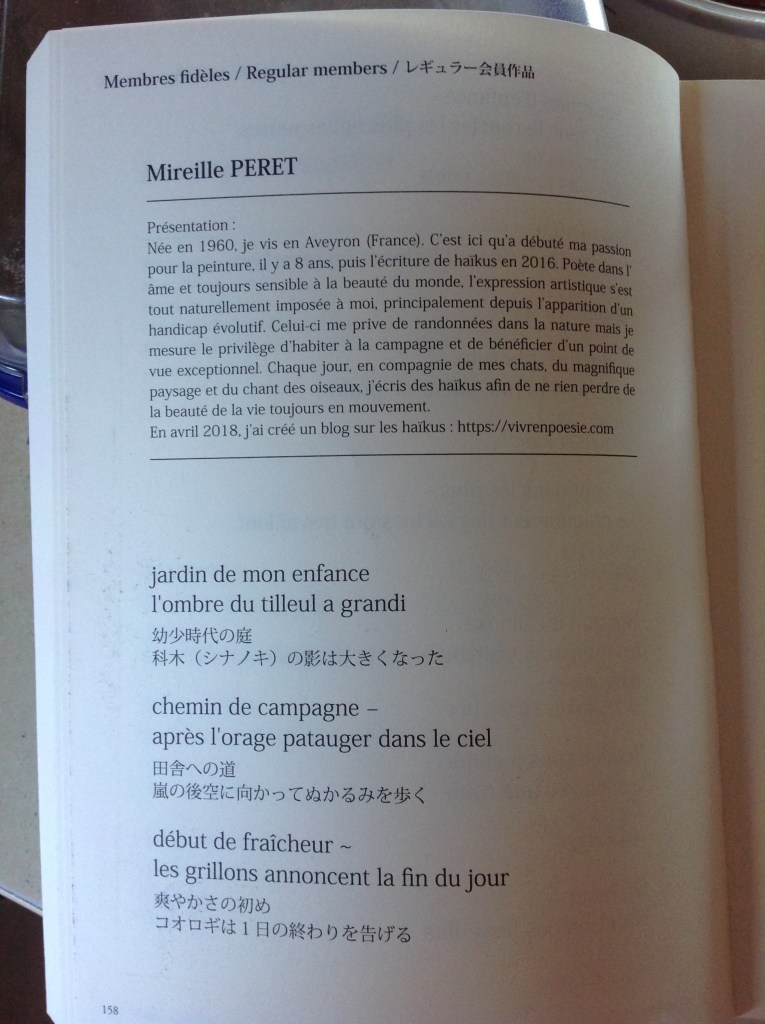 Je suis ravie et honorée de me retrouver pour la seconde fois parmi les nombreux haïjins de l’anthologie internationale de Haïku University (Japon) ! 😊