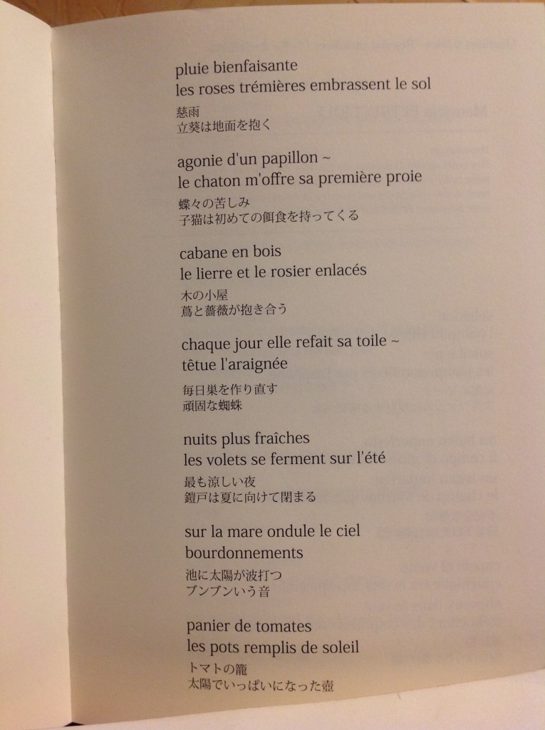 Fière d’y voir 14 de mes haïkus traduits en japonais (10 sur une double page, 1 dans la sélection mensuelle du mois de juillet et 4 dans le saijiki international) et 8 parmi les sélections hebdomadaires !