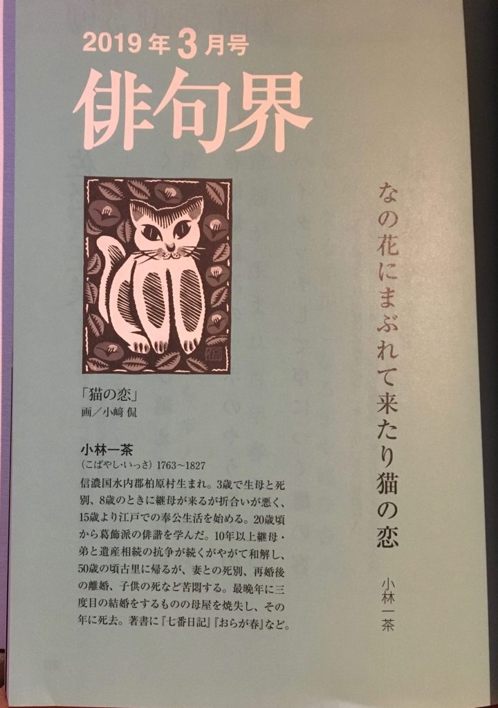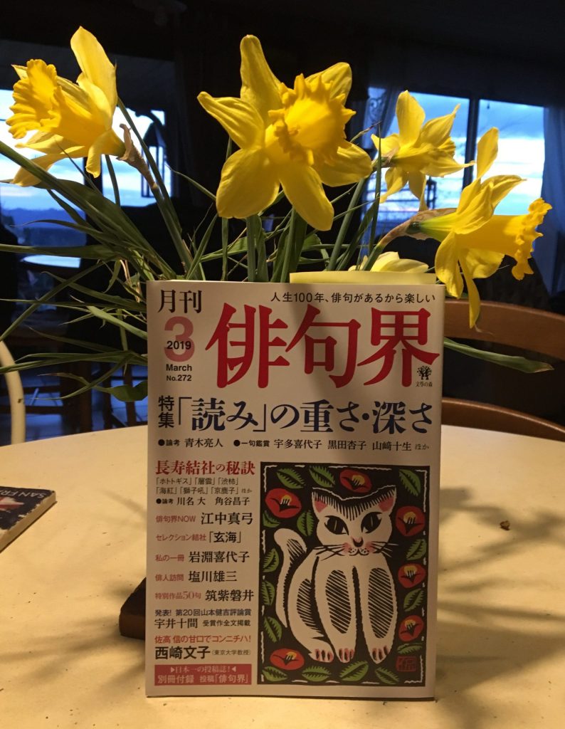 le magazine HAIKUKAI 俳句界 du mois de mars, l’un des plus importants magazines japonais du haïku, où figure mon texte en première ligne sur la page consacrée à Haiku Column.