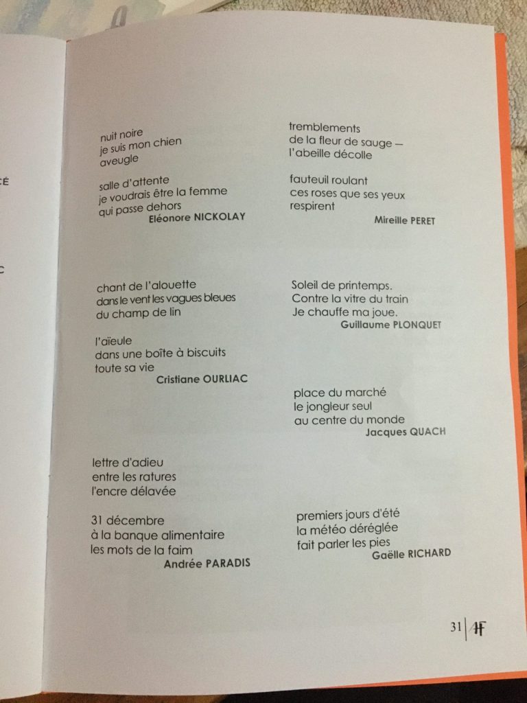 Ci-dessous, pour chaque thème, la page des prix du jury, suivie de celle où se trouvent mes haikus sélectionnés. Sans vous dévoiler toute la sélection, je vous invite donc à découvrir d’autres auteurs si talentueux. Bravo à eux !