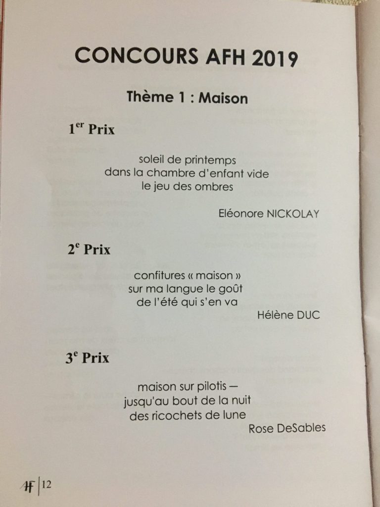 Très honorée et heureuse de voir mon haïku sélectionné au deuxième concours «photos-haïkus » 2019 de l’AFH ! 😊 Un grand Merci à Valérie Rivoallon (jury) 🌹