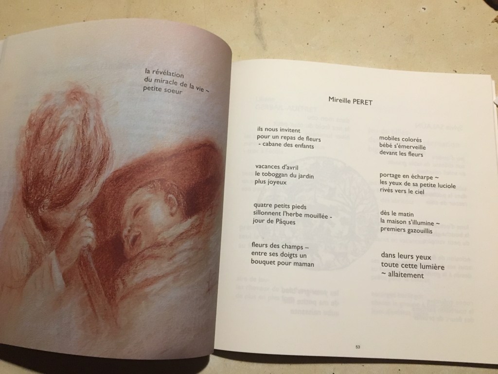 Je suis ravie de vous annoncer que 9 de mes haïkus y figurent, ainsi qu’une sanguine de ma composition !